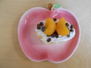 自分たちで美味しそうにデコレーションしたロールケーキに冷たい紅茶