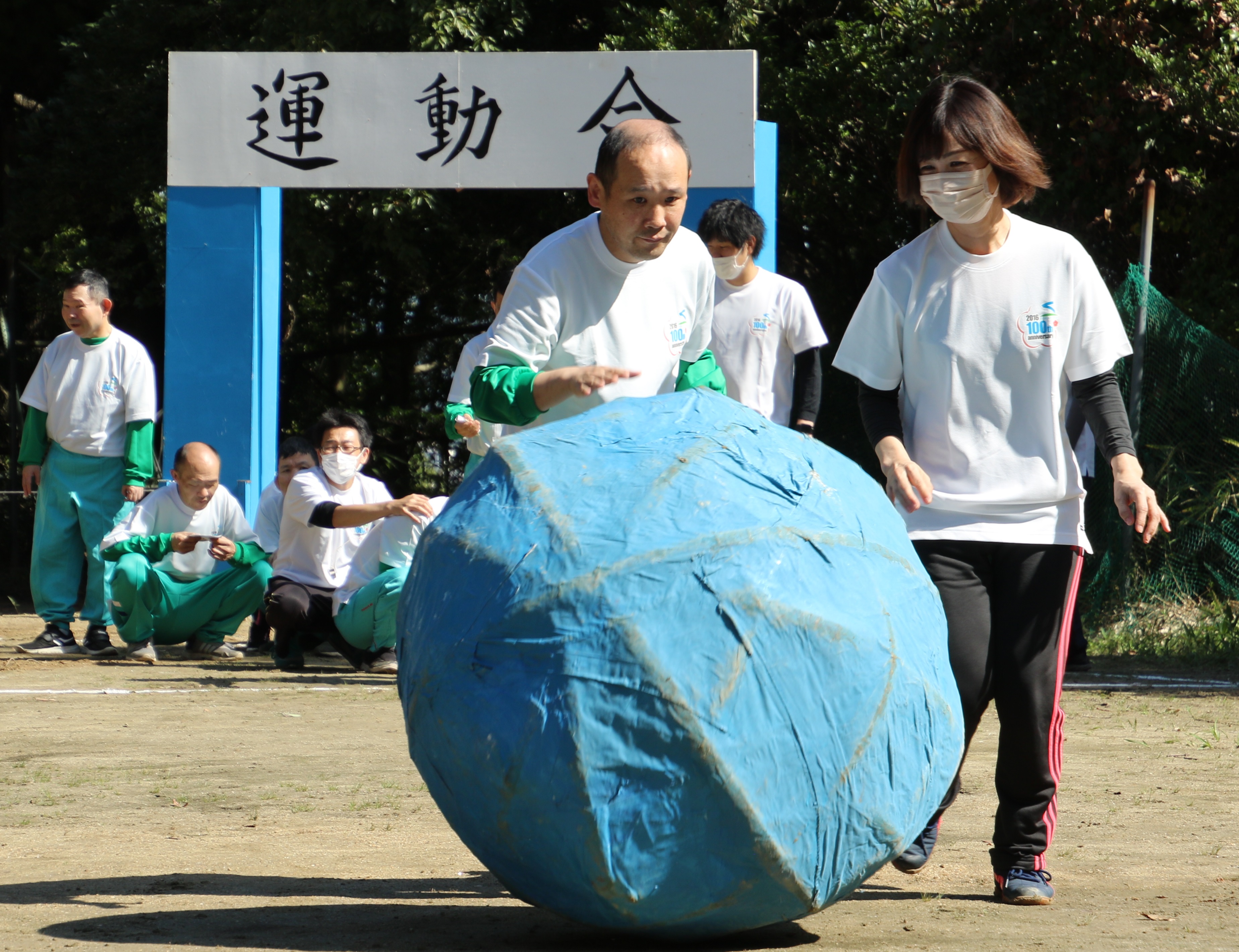 写真:大玉ころがしみなさん上手に転がしていました。