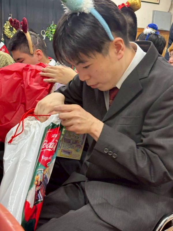 サンタから受け取ったプレゼントが気になる様子で皆さんソワソワしてました(笑)