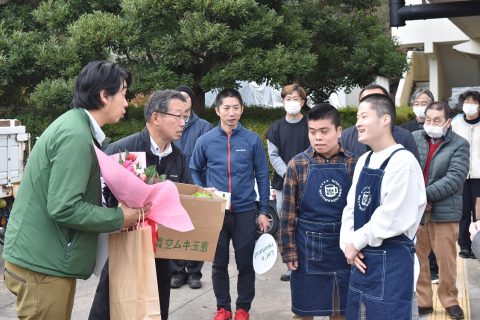 ささやかながら、 焙煎工房 里山ROASTERY前にて、ご寄贈式典とテープカットをさせて頂きました