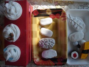 先週作った紙粘土のお寿司屋やスイーツ達が1週間かけて無事に乾燥し、…